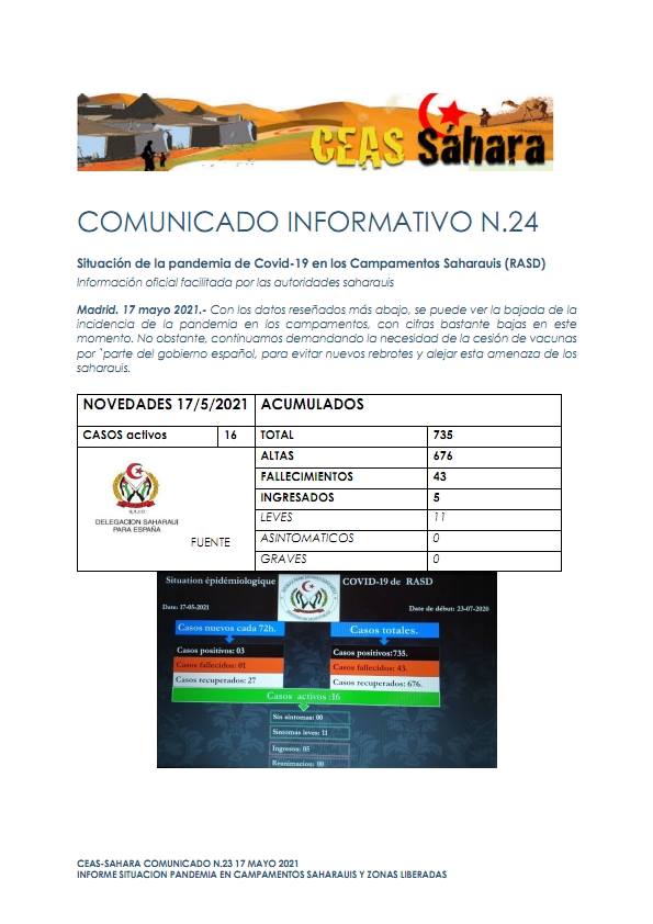 Koronabirusaren intzidentzia Aljeriako saharar kanpamenduetan.