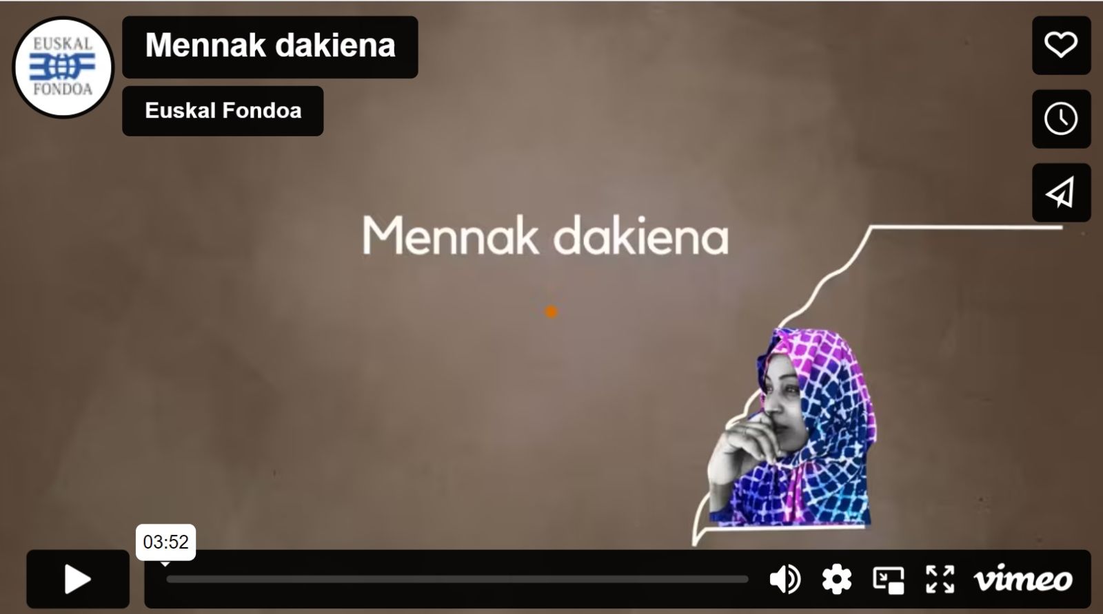 Mennak dakiena aurkezten dizuegu, Europako herrialdeek Mendebaldeko Sahararekin duten loturari buruzko komunikazio-kanpaina. Justizia, askotan, interes ekonomiko eta komertzialen gainetik ez dagoela islatzen duten gertaera historiko eta berriak kontatzen dituen lana da.Menna da ikus-entzunezko labur honen protagonista sahararra; gertakariak nola garatu diren kontatzen du eta horiei buruz hausnartzeko eskatzen digu.