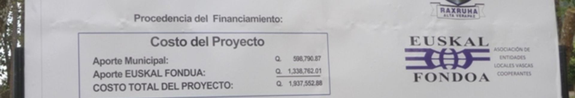 Helburuak:Edateko ura banatzeko sistema bat eraikitzea Raxruháko hiriguneko herritarrentzat.Ur jatorria duten eritasunek eragindako erikortasun eta hilkortasun tasak murriztuz bizi- eta osasun balditzak hobetzea.